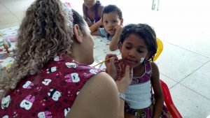 A Ingrid Vitória, de apenas oito anos, esperou o atendimento pintando o rosto. “Minha mãe me traz aqui há pouco tempo. Eu gosto de pintar o rosto. Me ajuda a ficar mais calma”, disse ela.
