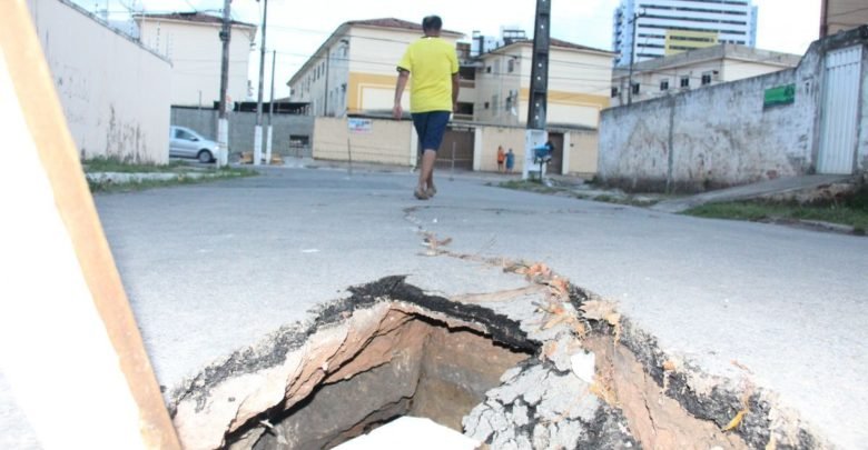 “Como a região mais afetada fica no ponto mais baixo do bairro, o volume de água das chuvas tende a escoar e se concentrar com intensidade ao redor dos conjuntos Divaldo Suruagy e Jardim das Acácias”, falou Rogério. A falta de manutenção periódica tem gerado infiltramentos da água no solo. Algo que é potencializado com os poços e fossas construídas pelos moradores.