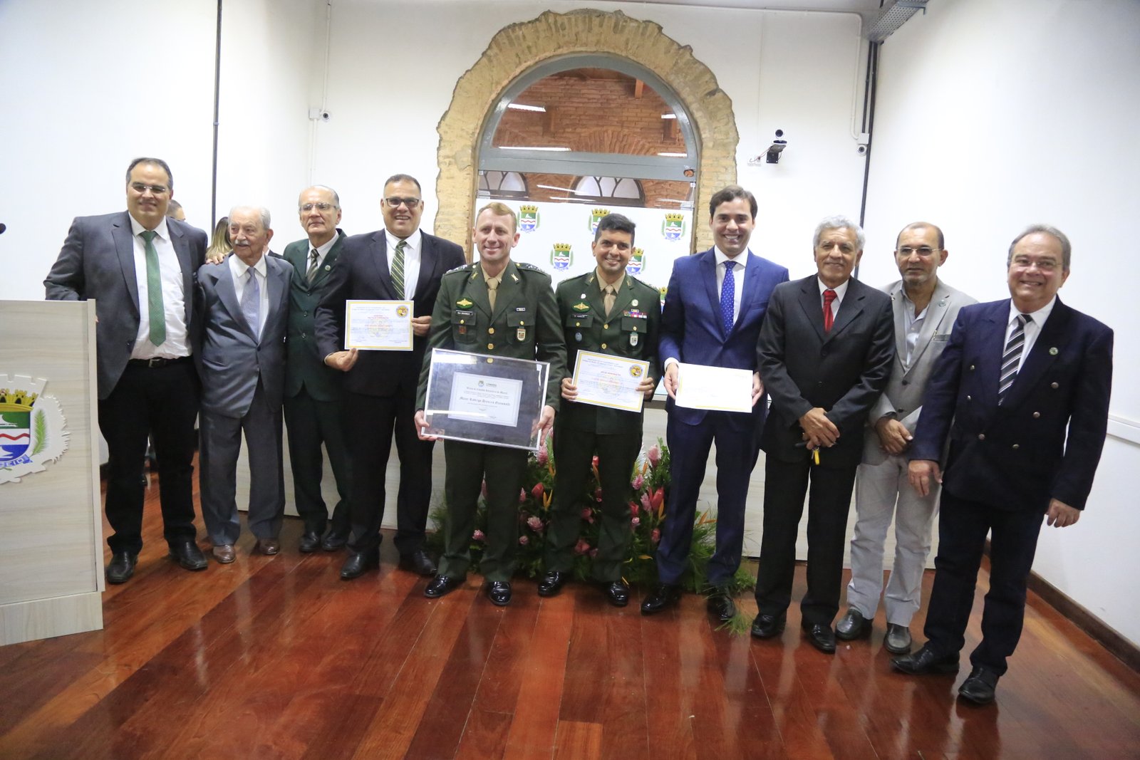 Na sessão, o presidente da Associação dos Ex-Combatentes do Brasil e dos Amigos do Museu da Segunda Guerra, Romany Roland Cansanção, em nome da entidade, agraciou o presidente da Casa, Kelmann Vieira, com o título de sócio benemérito da entidade e o vereador licenciado, hoje secretário municipal de governo, Eduardo Canuto, com a Comenda Major Elza. Além disso, frisou a importância do trabalho do Exército e do prazer de participar dessa sessão solene.