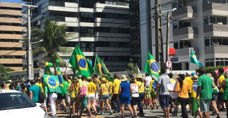 Durante este domingo, um grupo de manifestantes realiza um ato em apoio ao presidente Jair Bolsonaro (PSL) e às reformas propostas pelo governo. Os protestantes se concentraram no corredor Vera Arruda e seguem pela Avenida Álvaro Otacílio.