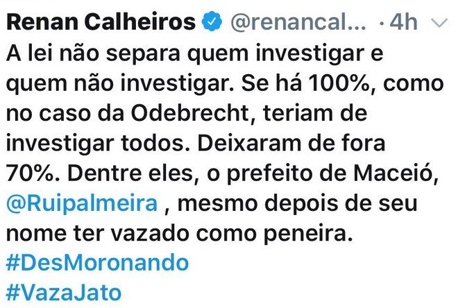 Renan Calheiros escreveu o que todos sabem: a Operação Lava Jato é seletiva e poupou Rui Palmeira de uma investigação mais detalhada.