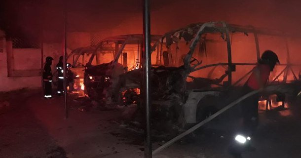 NA MADRUGADA: Quatro micro-ônibus de transporte complementar de Alagoas pegam fogo em galpão