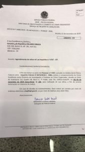 Em nota divulgada pela defesa de Eduardo Braga, os advogados José Alberto Simonetti e Fabiano Silveira esclareceram que o parlamentar recebeu esta manhã uma solicitação do delegado Bernardo Amaral para prestar esclarecimentos no inquérito 4707 (Supremo Tribunal Federal) e que o senador já fez contato para ajustar a data do depoimento.