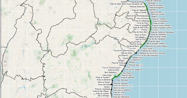 Entretanto, há pontos, como um trecho entre a Paripueira e a Barra de Santo Antônio, que ainda aparecem com manchas e já não apresentam manchas significativas.