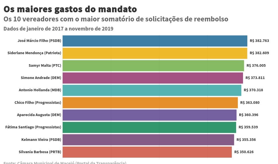 Verba de gabinete: vereadores de Maceió gastaram mais de R$2 milhões em 2019