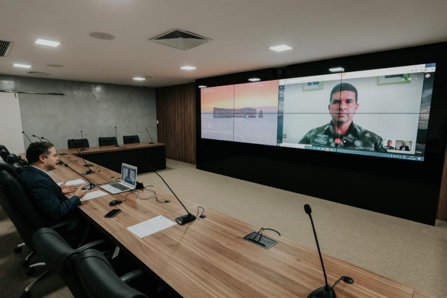 Pela manhã, o governador conversou, também por videoconferência, com o comandante do 59º Batalhão de Infantaria Motorizado (59º BIMtz), Cláudio Gadelha.