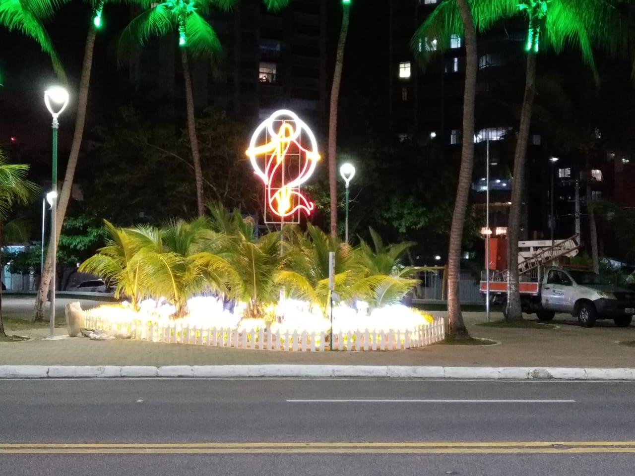 Após o cancelamento da iluminação de Páscoa, a Superintendência Municipal de Energia e Iluminação Pública (Sima) informa que foi instalado na Praça Gogó da Ema, em Ponta Verde, um painel com a imagem de Jesus Cristo. A estrutura foi montada justamente para representar os sentimentos de fé e esperança em tempos da pandemia do novo coronavírus.