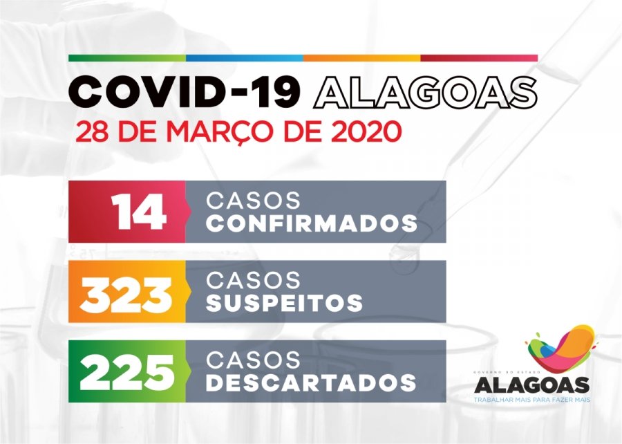 BOLETIM CORONAVÍRUS: Alagoas tem 14 casos confirmados para Covid-19