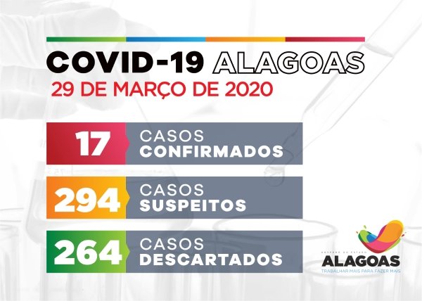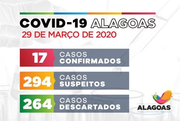 Alagoas tem 17 casos confirmados da Covid-19 neste domingo (23), segundo Boletim Epidemiológico do Centro de Informações Estratégicas em Vigilância em Saúde (Cievs).