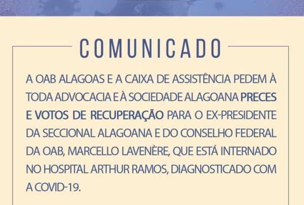O meio jurídico alagoano acompanha o quadro de saúde de um dos maiores líderes da OAB, em todos os tempos, torcendo pela sua pronta recuperação.