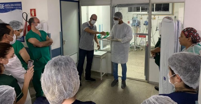 Na ocasião, foi realizada uma simulação de como colocar e retirar os Equipamentos de Proteção Individual (EPIs). “A contaminação nos profissionais de saúde, geralmente, acontece no momento de retirada dos EPIs. Por isso, achamos importante reforçar com eles cada passo”, ressaltou o médico do HGE.