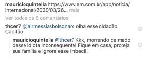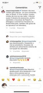 O secretário de Infraestrura, Mauricio Quintella, ex-ministro do Transportes, usou o Instagram para bater boca com os seguidores após sugerir que “o Coronavírus não infectou o presidente Jair Bolsonaro por não se reproduzir em alienado”.