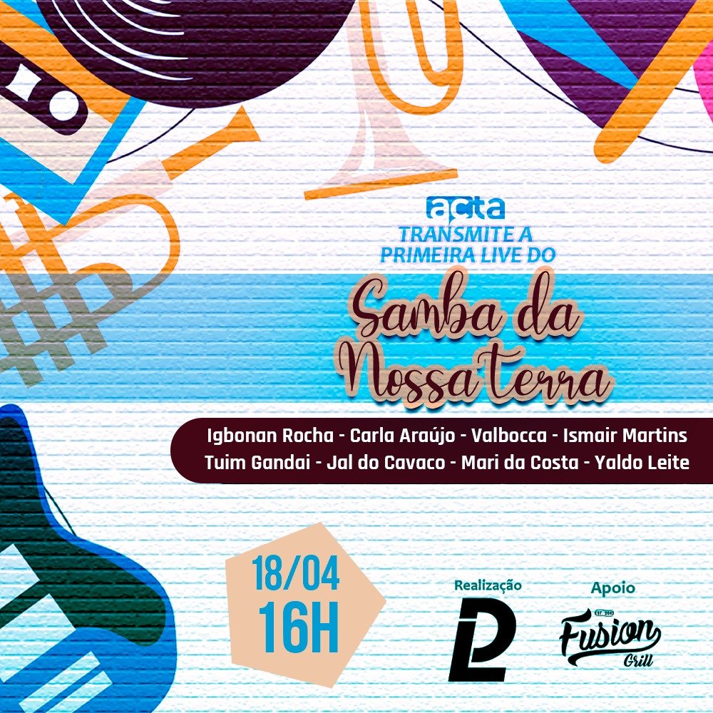 De casa , assista a I LIVE DO SAMBA DA NOSSA TERRA pelo Youtube, Instagram, Facebook e tweeter que terá a transmissão da ACTA e apoio do MACEIÓ 40 GRAUS .