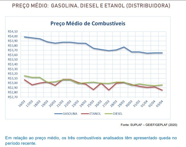 No boletim, a Sefaz registra que “em relação ao preço médio, os três combustíveis analisados têm apresentado queda no período recente”.