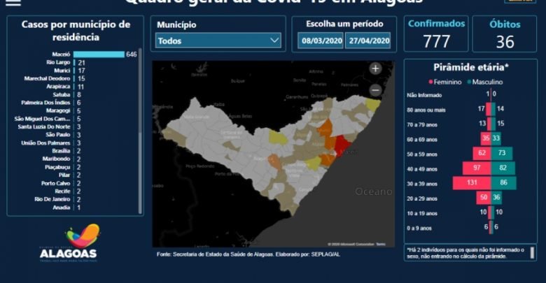 Com o intuito de ampliar o acesso à informação para a população alagoana, o Governo de Alagoas lançou, nesta quarta-feira (29), um painel interativo sobre a situação atualizada do coronavírus (Covid-19) no estado. Desenvolvido pela Secretaria de Estado do Planejamento, Gestão e Patrimônio (Seplag), em parceria com a Secretaria de Estado da Saúde (Sesau), o projeto visa promover mais transparência dos dados em relação à pandemia e fortalecer a proteção à população alagoana.