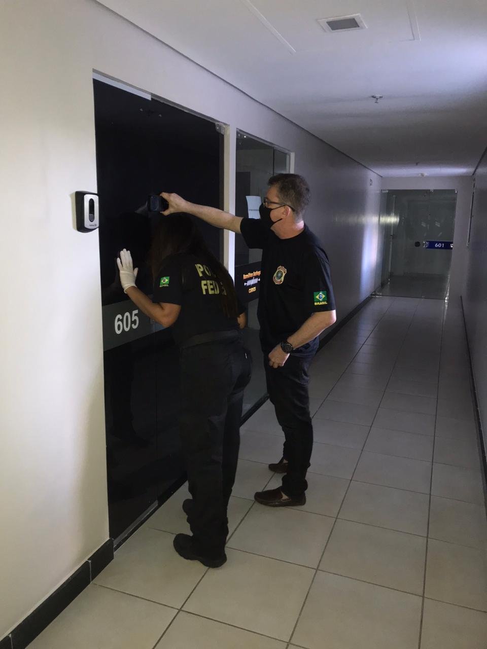 Em Alagoas, apreensões foram realizadas no Norcon Empresarial, em Maceió. Fotos da assessoria da PF mostram agentes federais em frente às salas 605 e 601, onde funciona uma multinacional e trabalharia a filha de um ex-secretário estadual.