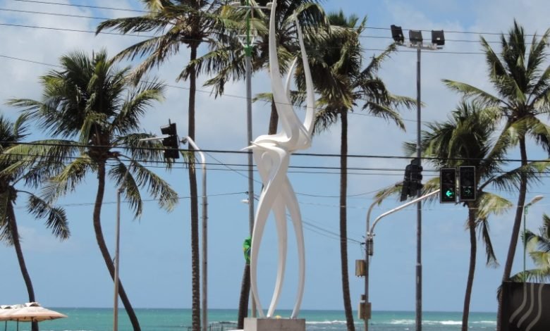 A Avenida Amélia Rosa, na Jatiúca, em Maceió, ganhou a escultura do artista Reinaldo Lessa chamada “Encontros” para homenagear bares e casas noturnas na região.