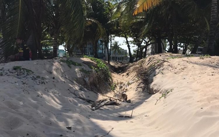Do dia para a noite “apareceu” uma vala de quase um metro de profundidade na areia da praia de Pajuçara, em Maceió, mais precisamente, quase em frente à piscina natural, ponto que atrai milhares de turistas por ano.