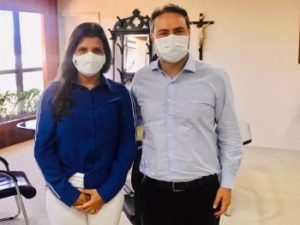 A candidata a prefeita de Novo Lino pelo PL, Marcela Gomes, foi recebida nesta quarta-feira, 7, no Palácio República dos Palmares, pelo governador de Alagoas Renan Filho.