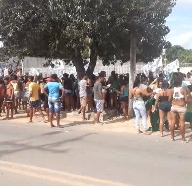 Manifestantes se reuniram na frente do fórum do município pedindo uma nova eleição, argumentando que houve fraude no pleito.