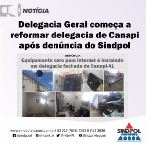 O Sindicato dos Policiais Civis de Alagoas (Sindpol) informa que a Delegacia Geral está reformando a delegacia da cidade de Canapi após denúncia da entidade sindical.
