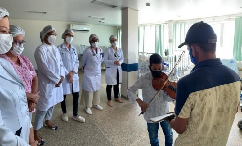 RECONHECIMENTO! Garoto se recupera de infecção rara e toca violino para agradecer a equipe pediátrica do HGE