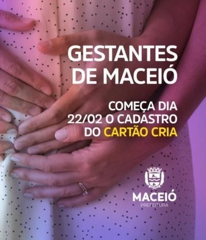 A Secretaria Municipal de Assistência Social (Semas) divulgou nesta sexta-feira (19), o cronograma de cadastro das gestantes para o recebimento do Cartão Cria (Criança Alagoana). O cadastro será iniciado na próxima segunda-feira (22).