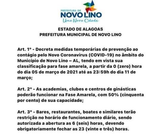 O post NOVO DECRETO! Prefeitura de Novo Lino publica medidas para conter crescimento da Covid-19 apareceu primeiro em Repórter Maceió.
