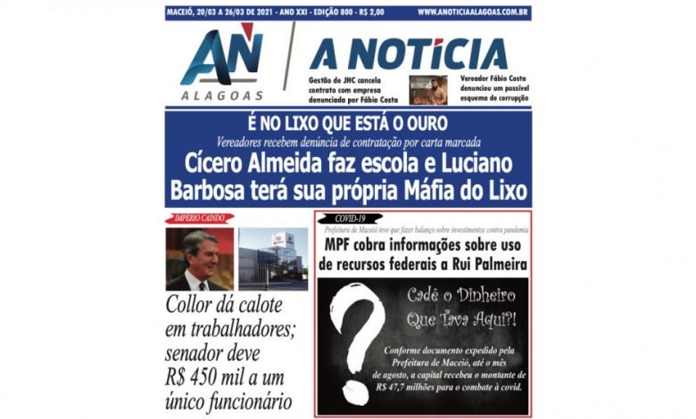 JORNAL A NOTÍCIA – É NO LIXO QUE ESTÁ O OURO – Cícero Almeida faz escola e Luciano Barbosa terá sua própria Máfia do Lixo