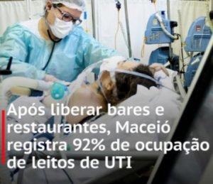 Donos de bares e restaurantes repudiaram matéria publicada no site Novo Extra nessa terça-feira (6) com o título “Após liberar bares e restaurantes, Maceió registra 92% de ocupação de leitos de UTI”.