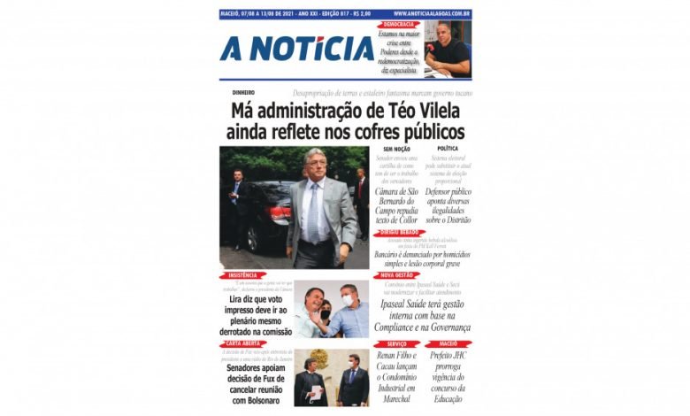 JORNAL A NOTÍCIA – DINHEIRO: Má administração de Téo Vilela ainda reflete nos cofres públicos JAN-817