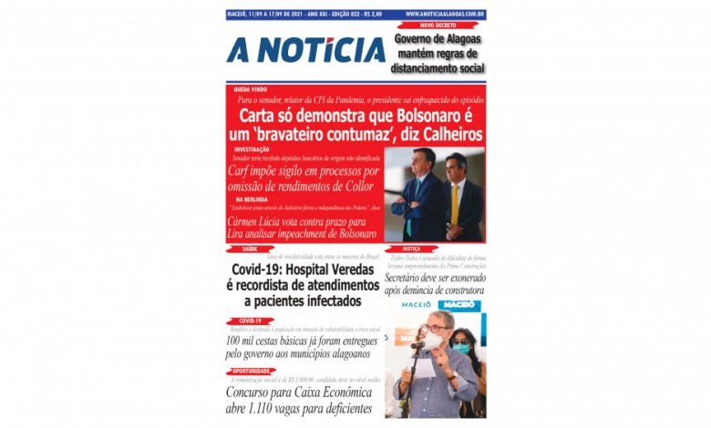 JORNAL A NOTÍCIA – QUEDA VINDO: Carta só demonstra que Bolsonaro é um ‘bravateiro contumaz’, diz Calheiros