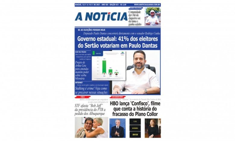 JORNAL A NOTÍCIA – SE AS ELEIÇÕES FOSSEM HOJE – Governo estadual: 41% dos eleitores do Sertão votariam em Paulo Dantas JAN-831