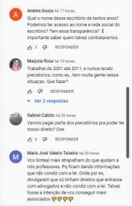 Uma internauta comentou as declarações da presidente da entidade. “Esqueceu só de avisar que os outros que optaram por outros advogados irão receber do mesmo jeito sem se prejudicar. Cada um tem liberdade e direito de entrar com quem quiser”, destacou.