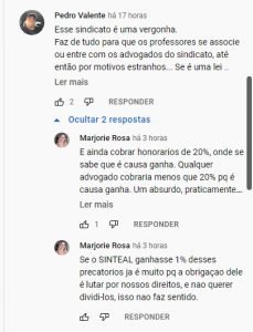 “Esse sindicato é uma vergonha. Faz de tudo para que os professores se associe ou entre com os advogados do sindicato, até então por motivos estranhos. Se é uma lei federal, o dinheiro está na conta da prefeitura”, disse outro.