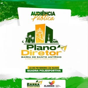 A Prefeitura Municipal de Barra de Santo Antônio, realizará nesta terça-feira, 22 de fevereiro, uma audiência pública para o lançamento do Plano Diretor do município. O evento acontecerá na Quadra poliesportiva da Ilha da Crôa, às 16:00 horas.