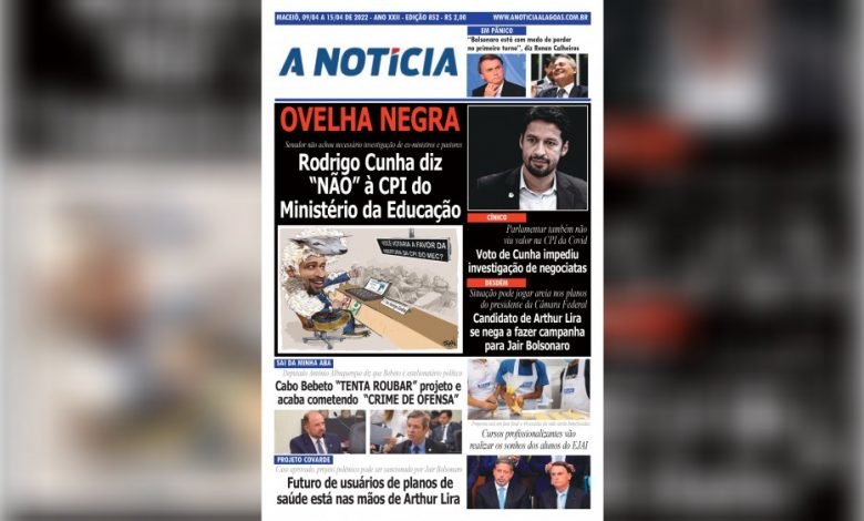 JORNAL A NOTÍCIA – OVELHA NEGRA: Rodrigo Cunha diz “NÃO” à CPI do Ministério da Educação Senador não achou necessário investigação de ex-ministros e pastores JAN-852