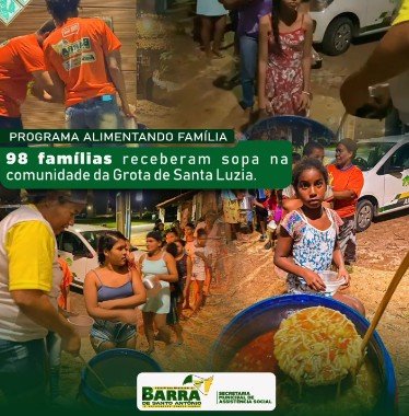 ALIMENTANDO FAMÍLIAS – Prefeitura da Barra de Santo Antônio distribui sopas em Santa Luzia