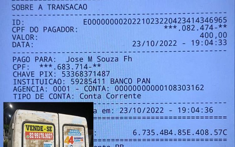 Com José Malaquias de Souza Filho, os agentes de segurança apreenderam um aparelho celular. Nele, constava o comprovante de pagamento pelo serviço, via PIX, supostamente realizado pela coordenadora geral da campanha de Rodrigo Cunha (União Brasil) e ex-prefeita de Campo Alegre Pauline Pereira.