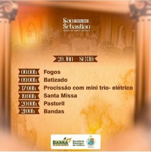 PROGRAMAÇÃO: Barra de Santo Antônio realiza a tradicional festa de São Sebastião
