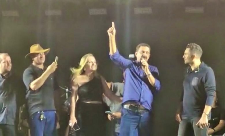 ARMADO ATÉ OS DENTES – Prefeito James Marlan sobe armado em palco durante show de Mano Walter