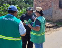 Cerca de 20 educadores, entre servidores da Sudes e jovens aprendizes das empresas responsáveis pela coleta domiciliar na capital, visitaram residências e pontos comerciais com orientações sobre os equipamentos públicos disponibilizados pelo órgão para o descarte correto e sobre os malefícios causados pelo despejo inadequado do lixo.