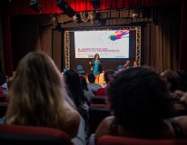 A primeira mesa de debates do evento, sobre o papel da mulher trans no mercado de trabalho, foi marcada pelas falas de Fabíola Silva e Sarah Doullenner, ambas trouxeram problemáticas e experiências profissionais e de vida.