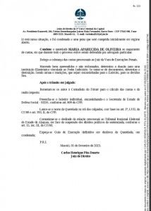 “Portanto, torno a condenação da Querelada Maria Aparecida de Oliveira em definitivo à pena de 04 (quatro) anos, 06 (seis) meses e 19 (dezenove) dias de detenção, e ao pagamento de 144 (cento e quarenta e quatro) dias-multa, no patamar já acima especificado, pelo que determino que a pena seja inicialmente cumprida em regime semiaberto”, decidiu. A decisão é do dia primeiro de fevereiro.
