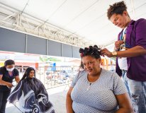 Além dos serviços de saúde que são normalmente oferecidos pelo Saúde da Gente, durante todo o dia, as mulheres do Reginaldo contaram com outras ações para aumentar a autoestima, com corte e escovação de cabelos, design de sobrancelhas, penteados, distribuição de brindes e lanches para as usuárias.