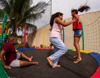 Na ocasião, as crianças também se divertiram durante a tarde. Para elas, foram ofertados espaços recreativos, com pula-pula, brinquedos infláveis, algodão doce e pipoca, além de aproveitarem os serviços oferecidos pela Sudes, como oficinas de sabão, puff de garrafa pet e brinquedos sustentáveis.