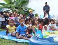 Os professores utilizaram o espaço arborizado da creche para montar um cenário de fazenda, ao transportar as crianças para o mundo da leitura e conscientizá-las sobre a importância de manter hábitos de higiene, como conta o professor Leandro Fernandes.