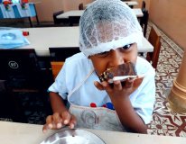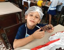 Para o pequeno Kaiky da Silva, de 6 anos, o dia foi bom e o chocolate estava ótimo. “Foi muito bom decorar os ovos e brincar com os amigos fazendo os doces, vou comer muito agora e guardar um pouco para depois do almoço, adorei”, comemorou.