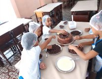 A nutricionista e professora Rita de Cássia coordenou a confecção do chocolate junto com uma turma de estudantes do 7º e 8º períodos de nutrição. Ela fala da importância da atividade para os alunos vivenciarem a realidade fora da faculdade.