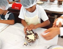 Trinta crianças do Serviço de Convivência e Fortalecimento de Vínculos (SCFV) do Lar São Domingos tiveram a quarta-feira (19) recheada de chocolate e doces, em referência ao mês da Páscoa. Os pequenos participaram de uma oficina de ovos de chocolate e se deliciaram com as guloseimas produzidas.